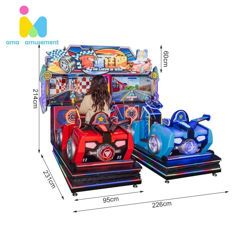 1.The player inserts coins and the game starts; 2.Drive the vehicle in the cab and control the steering of the vehicle by rotating the steering wheel to reach the finish line smoothly and win the ranking;